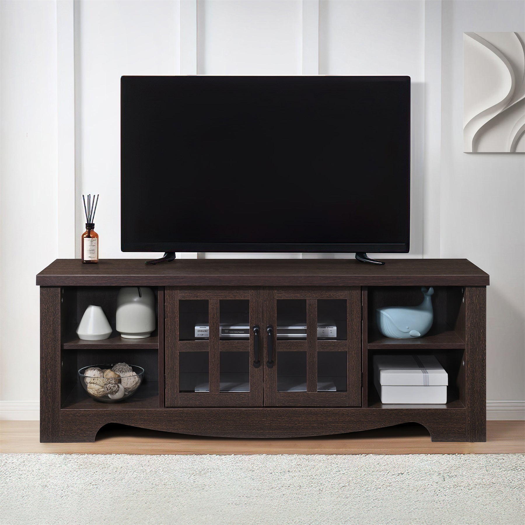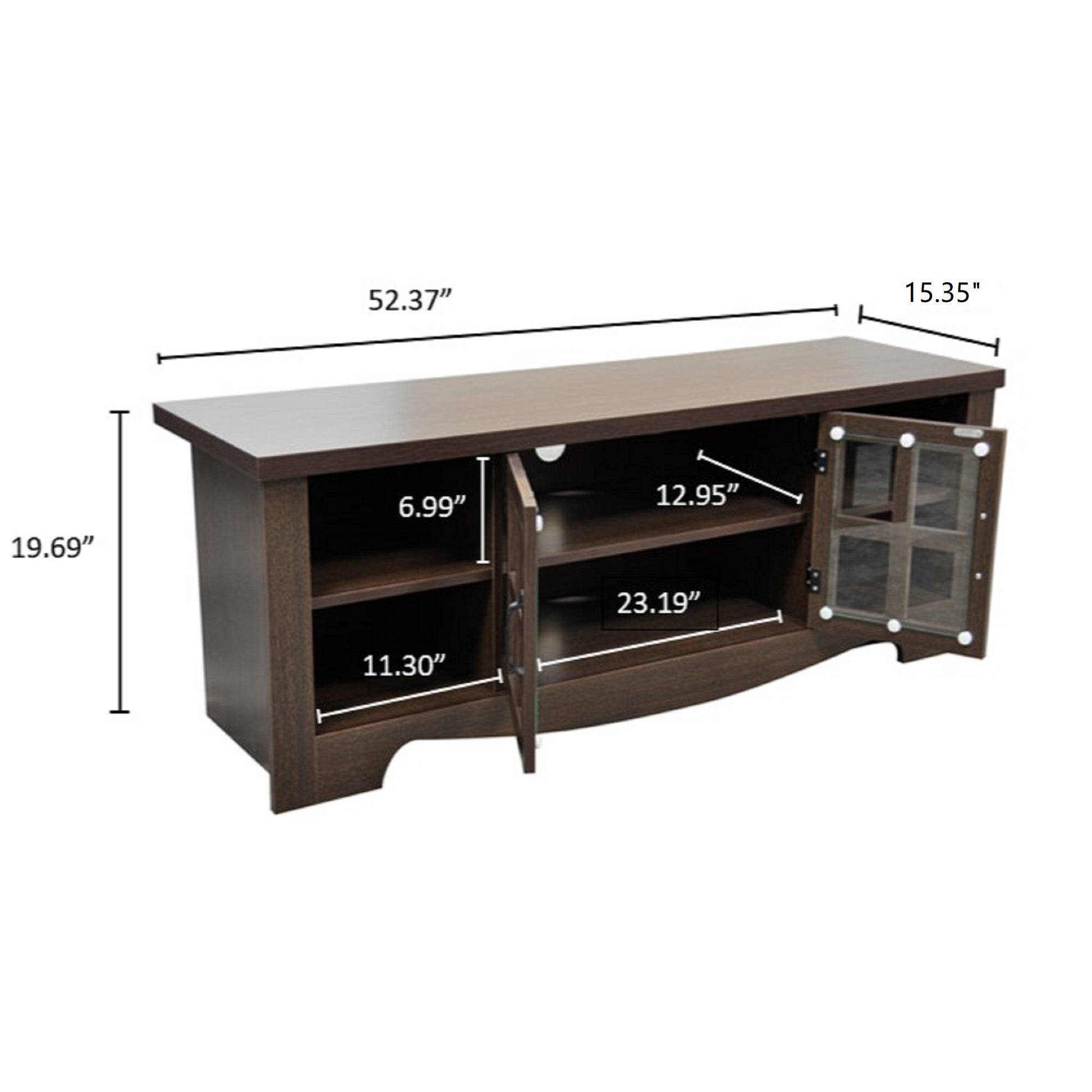 52.37 in. Wood TV Stand with 1 Glass-fronted Storage Cabinets Fits TV's up to 60 in.