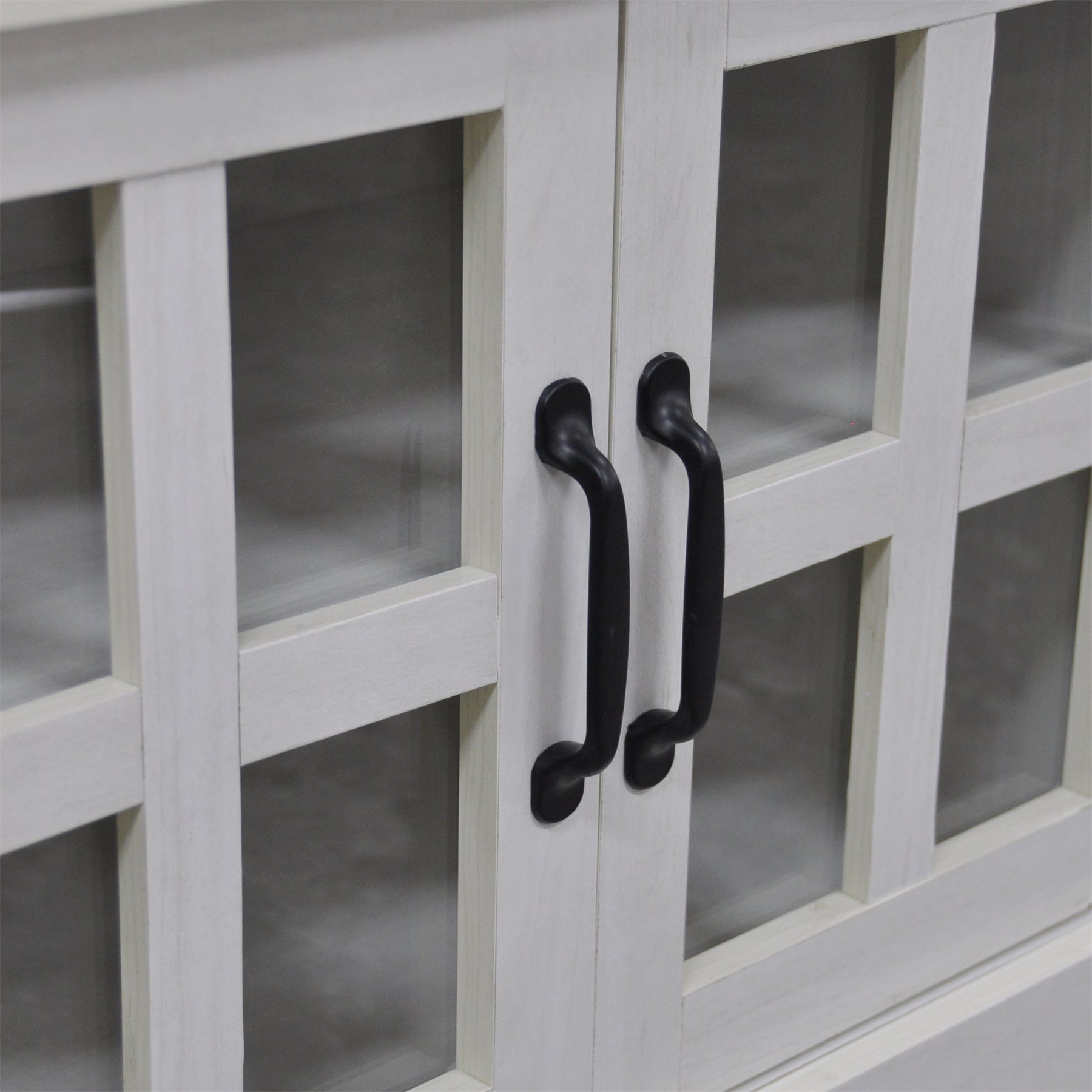 - Two panel cabinet doors provide enclosed storage for a clean and organized look.