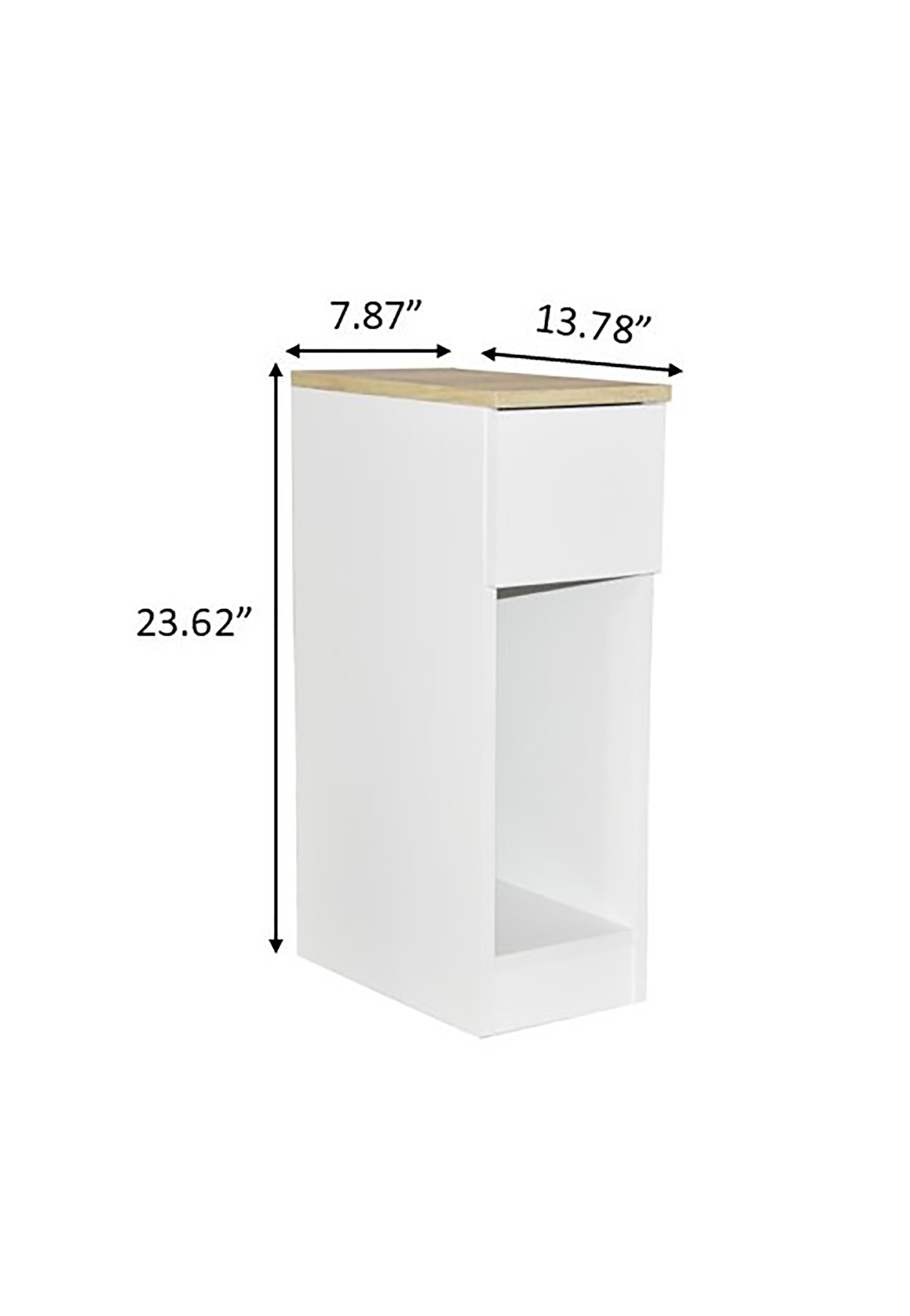 This compact end table offers a space-saving design ideal for tight corners or small rooms. It features a top drawer for hidden storage. With its clean lines and minimalist style, it complements a variety of modern interiors.